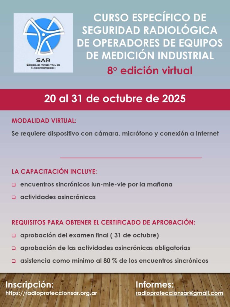 El CURSO ESPECÍFICO DE SEGURIDAD RADIOLÓGICA PARA OPERADORES DE EQUIPOS