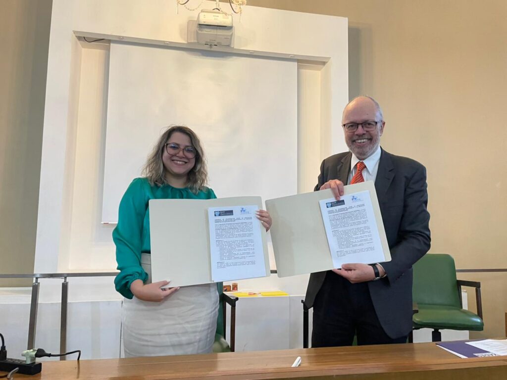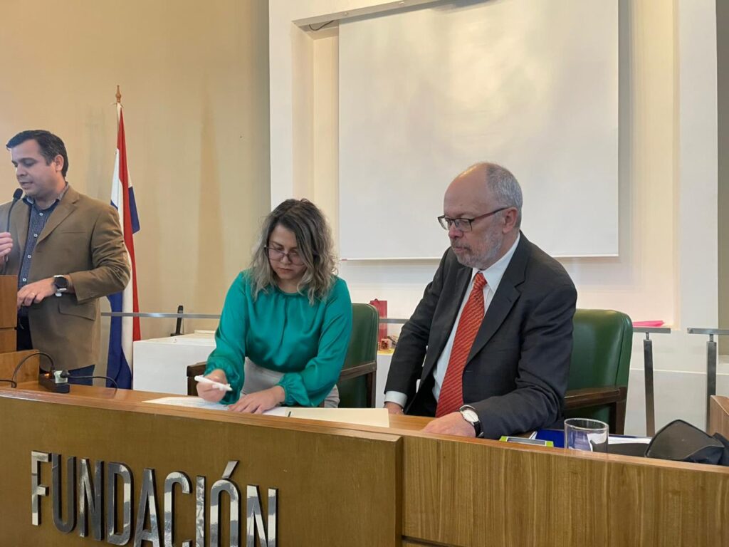 El Convenio fue firmado por los presidentes de ambas entidades Mg Analiz López Espinoza y Esp Alejandro Leciñana Blanchard. El acto se llevó a cabo en el marco del Primer Congreso Paraguayo de Protección Radiológica que se celebró en la ciudad de Asunción, durante los días 10 y 11 de abril.